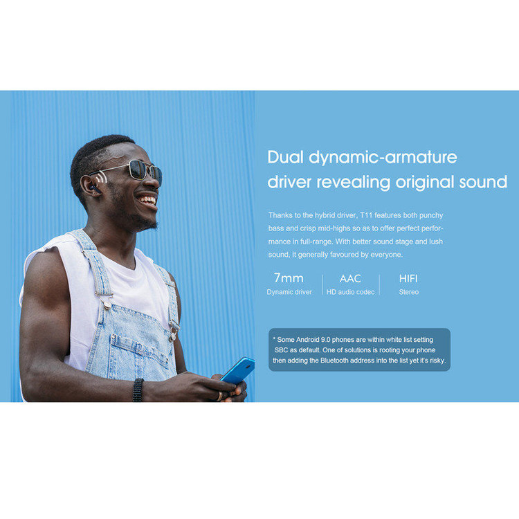 هدفون QCY T11 TWS (indusiform)از یک سیم پیچ متحرک + طراحی بلندگوی هیبریدی دوگانه آهنی استفاده می کند. سیم پیچ متحرک دارای یک زمینه صدای گسترده، فرکانس کامل کم، پوشش خوب زمینه صدا، صدای شل و طبیعی مناسب برای گوش دادن به موسیقی است.آهن متحرک دارای جزئیات غنی، فرکانس های روشن از میانه به بالا، خطوط صوتی واضح تر و جزئیات غنی موسیقی است. مناسب برای گوش دادن به آهنگ های ملایم و ظریف مانند آواز و موسیقی کلاسیک.از نظر طراحی، هدفون بی سیم QCY T11 شیائومی طرحی ساده و شیک را اتخاذ می کند. وزن هر گوشی فقط 3.7 گرم است که از یک کاغذ A4 سبک تر است. سه نوع سری گوشی برای انتخاب ارائه می دهد. T11 از چهار فناوری کاهش نویز میکروفون استفاده می کند. و هر هدست به دو میکروفون شکل دهنده پرتو مجهز شده است. از طریق الگوریتم های پردازش سیگنال دیجیتال، می تواند به طور موثرتری صدای پس زمینه تماس را حتی در دفاتر پر سر و صدا، اتوبوس و مکان های دیگر سرکوب کند. بنابراین از تماس های واضح اطمینان حاصل می کند.از نظر دوام باتری، هدفون بی سیم QCY T11 شیائومی در صورت شارژ کامل تا 3.5 ساعت پخش را پشتیبانی می کند. کل عمر باتری در صورت استفاده با محل شارژ می تواند به 21 ساعت برسد. همچنین از شارژ سریع پشتیبانی می کند. محفظه شارژ 600 میلی آمپر ساعتی می تواند هر دو گوش را در حدود 10 دقیقه شارژ کند و به مدت 1 ساعت قابل استفاده است.پس از موفقیت در جفت شدن، می توانید تجربه هوشمند اتصال خودکار پس از باز شدن درب را تجربه کنید. همچنین از جفت شدن پنجره بازشو پشتیبانی می کند و اتصال با یک کلیک را آسان می کند.