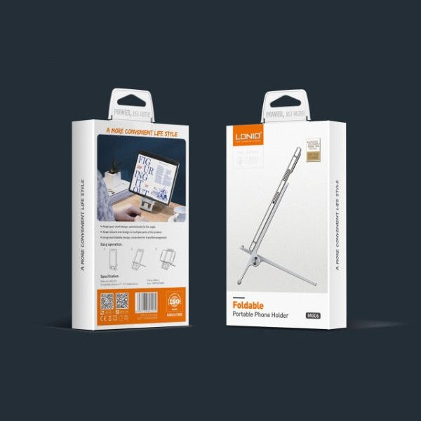 استندهای رومیزی یکی از کاربردی ترین لوازم جانبی موبایل و تبلت هستند که میتوان برای خواندن پی دی اف کتاب و فیلم دیدن و... از آنها استفاده کرد. هولدر تاشو LDNIO MG06 بازه حرکتی زیادی داشته و علاوه بر اینکه زاویه آن تا 90 درجه تغییر میکند، پایهاش هم تاشو است. این هولدر یا استند، بیشتر برای کسانی مناسب است که ساعات زیادی را صرف دیدن کلیپ و ویدئو در گوشی خود میکنند؛ با این هولدر دیگر نیازی به نگه داشتن خود گوشی خود در دست نیست و می توانید بسیار راحت تر به دیدن کلیپ و... بپردازید. به راحتی زاویه دید را تغییر دهید و حتی گوشی خود را شارژ کنید. این هولدر میتواند گوشی های بین 4.7 تا 7.2 اینچ را به راحتی نگه دارد. در بدنه این محصول از متریال مختلفی استفاده شده است که میتوان از آنها به ABS ،PC ،Silicon اشاره کرد. هولدر LDNIO MG06 Foldable Portable Phone Holder به گونه ای طراحی شده که شما امکان میدهد همیشه آن را به همراه داشته باشید و با خود جا به جا کنید. کافیست پایه بلند آن را خم کنید تا تخت شده و به راحتی در کیف جا شود. قسمتی از هولدر که گوشی روی آن قرار می گیرد، دارای پد سیلیکونی است که همین امر باعث می شود تا شما پس از قرار دادن موبایل یا تبلت، نگران افتادن آن ها نبوده و از این بابت خاطر جمع باشید. کف آن نیز با تکه های کوچک سیلیکونی پوشانده شده تا روی میز سر نخورد.