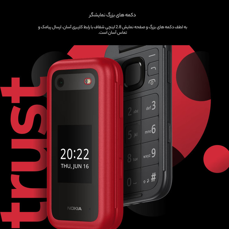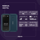 گوشیهای کلاسیک تاشو هنوز هم طرفداران بسیاری در بین کاربران دارند و شرکت نوکیا به عنوان یکی از قدیمیترین شرکتهای فعال در این زمینه توانسته است محصولات متنوعی را روانه بازار کند. نوکیا 2660 Flip یکی از گوشیهای کلاسیک تاشو و دوست داشتنی این شرکت است که با توجه به مشخصات فنی در نظر گرفته شده، توانایی ارائه عملکرد کاملا قابل قبولی را در اجرای فعالیتهای روزمره داشته باشد. این گوشی به صفحهنمایش با ابعاد 2.8 اینچ و رزولوشن 240×320 پیکسل از نوع TFT مجهز شده است. نکته جالب توجه این گوشی در حالت تاشده، بهره بردن از صفحهنمایش ثانویه است که این صفحهنمایش با ابعاد 1.77 اینچ با توانایی نمایش اعلانها، کاربرد بسیار بالایی را با خود بههمراه دارد. ابعاد و متریال مناسب صفحهکلید که زیر صفحهنمایش قرار گرفته هم امکان استفاده راحت و البته سریع را برای شما فراهم کرده است. در قسمت پشتی این گوشی هم یک سنسور دوربین با رزولوشن 0.3 مگاپیکسل بههمراه یک فلش LED در نظر گرفته شده است و باید بدانید که خبری از سنسور دوربین سلفی نیست. در بخش مشخصات سختافزاری هم نوکیا 2660 Flip به پردازنده Unisoc T107 مجهز شده که برای فعالیتهای روزانه عملکرد بسیار خوب و قابل قبولی دارد. باتری قابل تعویض با میزان ظرفیت 1450 میلیآمپرساعت هم به ازای هر بار شارژ صد درصدی همانند بسیاری از گوشیهای کلاسیک توانایی ارائه طول عمر مفید (زمان آماده بهکار) کاملا قابل قبولی را دارد.