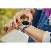 صفحهنمایش این نسخه از ساعت Galaxy Watch4 سامسونگ 1.4 اینچی دارد و برای ساخت آن از فناوری super AMOLED استفاده شده است. رزولوشن صفحهنمایش 450 × 450 پیکسل است و تصویر واضح و شفافی را به نمایش میگذارد. این ساعت دارای حسگرهای متنوعی است که باعث میشود، بتوانید فعالیتهای روزانه خود را بهراحتی اندازهگیری کنید. این حسگرها شامل شتابسنج، ژیروسکوپ، فشارسنج و شمارش ضربان قلب هستند. با بههمراهداشتن این ساعت، خیالتان بابت تمامی مسئولیتهایی که در طول روز دارید، راحت میشود. قابلیت ضدآب این ساعت باعث میشود بتوانید از آن در شنا کردن استفاده کنید. حاشیه این محصول جدید سامسونگ به لمس حساس است. صفحه Galaxy Watch4 رابط کاربری بسیار آسانی دارد و کاربر میتواند فوراً و تنها با یک بار ضربه روی صفحه به اپلیکیشنهای مختلف دسترسی پیدا کند. ساعت هوشمند گلکسی واچ 4 سامسونگ مانند برادر بزرگترش که سال پیش روانه بازار شد؛ به صفحه نمایش همیشه روشن (Always On) مجهز شده است.