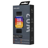 این ساعت بصورت مربعی طراحی شده که اندازه ی آن 1.85 اینچ است؛ ابعاد ساعت آیمی لب 11.25×38.14×44.14 میلی متر بوده و وزنی حدود 55 گرم (با بند) دارد. در قسمت کناری ساعت یک کلید ثابت و یک کلید چرخشی وجود دارد که به کمک آنها میتوانید بین منوهای ساعت جابجا شوید. همچنین یک بند 22 میلی متری مگنتی با کیفیت نیز روی این ساعت قرار گرفته است؛ یک بند سرمهای سیلیکونی نیز در بسته بندی ساعت وجود دارد. در هنگامی که ساعت را با بلوتوث به موبایل خود وصل کرده باشید، قادر خواهید بود که با IMILAB W02 به تماس تلفنی خود پاسخ دهید یا به انجام تماس تلفنی بپردازید. این ساعت یک صفحه نمایش 1.85 اینچی با رزولوشن 280 × 240 داشته که کیفیت بسیار بالایی را در اختیار شما قرار میدهد. روی صفحه از لایه محافظ شیشهای منحنی که بصورت 2.5D طراحی شده، پوشانده شده است. شرکت آی می لب واچ فیس های مختلفی را برای این ساعت معرفی کرده است. همچنین شما می توانید عکس خودتان را در پس زمینه ساعت قرار داده و یا میتوانید این واچ فیسها را بنا به سلیقه خود شخصی سازی کنید. این ساعت دارای قابلیت ردیابی 100 نوع حالت ورزشی مختلف را دارد که شامل دویدن، دوچرخه سواری، بدمینتون، تنیس، تنیس روی میز، کریکت، طناب زدن، بسکتبال، والیبال، بیسبال، راگبی، هاکی، رقص، یوگا، اسب سواری، اسکی فضایی، ورزشهای رزمی، تردمیل، دوچرخه ثابت، پیاده روی، نرمش و ... میشود که همگی به دقیق ترین حالت ممکن توسط ساعت جمع آوری شده و در اپلیکیشن نیز بصورت دقیقتر قابل مشاهده است. این ساعت دارای استاندارد مقاومت در برابر آب IP68 است که به معنای مقاوم بودن ساعت برابر آب و گرد و غبار است. اندازهگیری سطح اکسیژن خون، پایش کیفیت خواب، اندازهگیری سطح استرس، یادآوری دوره قاعدگی زنان، پایش 24 ساعته ضربان قلب از قابلییت های سلامتی این ساعت است. ساعت IMILAB W02 می تواند اس ام اس ها، تماس ها، زنگ آلارم، آب و هوا و سایر اطلاعات برنامه های اجتماعی را به موقع به شما یادآوری کند. همچنین با استفاده از این ساعت میتوانید موسیقی که روی گوشی تان پخش میشود را کنترل کنید. اپلیکیشن این ساعت GloryFit است و به راحتی از اپ استور و پلی استور قابل دانلود میباشد.