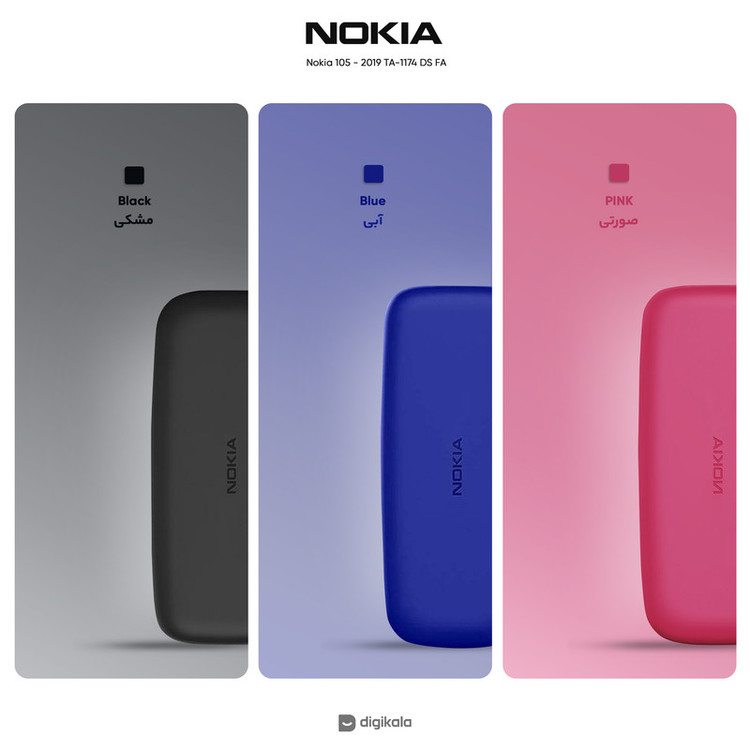 گوشی موبایل کلاسیک «نوکیا 105 مدل 2019 دو سیمکارت» برای کاربرانی طراحی و تولید شده است که انتظار زیادی از گوشیهای موبایل خود ندارند. مطمئناً کاربران گوشیهای ساده و ارزانقیمتی چون نوکیا 105، تقاضای زیاد و دور از ذهنی از گوشی خود ندارند؛ زیرا اصلیترین توقع این افراد از تلفن همراهشان، برقراری تماس و فرستادن پیامک به بهترین شکل ممکن است. نوکیا در طراحی 105، صفحهکلیدی قرار داده است که تایپ و ارسال پیامک با آن بسیار آسان خواهد بود؛ همچنین این محصول از دو سیمکارت در سایز اصلی پشتیبانی میکند و حدود 73 گرم وزن دارد. نوکیا، 105 را به نمایشگری 1.77اینچی مجهز کرده که از نوع LCD بوده و در ساخت آن از فناوری TFT بهره گرفته شده است. این نمایشگر میتواند 64 هزار رنگ را نمایش دهد و با توجه به ابعادش، تراکم پیکسلی 113 پیکسل بر هر اینچ را به تصویر بکشد. همانطورکه اشاره شد، شما بهعنوان کاربر میتوانید دو سیمکارت را در سایز اصلی درون شیارهای 105 قرار دهید و از آن برای برقراری ارتباط استفاده کنید. بد نیست بدانید این دو سیمکارت، فقط از شبکهی 2G پشتیبانی میکنند و به شبکههای دیگر اینترنت دسترسی ندارند. از دیگر راههای ارتباطی در محصول جدید نوکیا میتوانیم به رادیو FM اشاره کنیم. مانند بسیاری از گوشیهای کلاسیک دیگر نوکیا 105 هم دوربین ندارد. وظیفهی تامین انرژی این مجموعه امکانات در 105، به باتری لیتیومیونی با ظرفیت 800 میلیآمپرساعت سپرده شده است که با یکبار شارژ کامل میتواند امکان 14 ساعت مکالمه را برای کاربران فراهم کند. صفحهکلید فارسی از دیگر مشخصات این گوشی است.