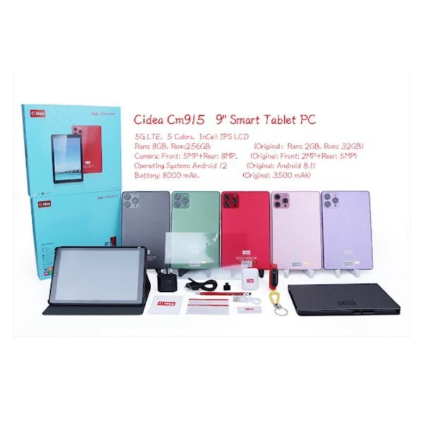 ### معرفی تبلت 9 اینچی Cidea CM915 تبلت **Cidea CM915** با طراحی شیک و امکانات متنوع، یک گزینه مناسب برای کاربران است که به دنبال تبلتی با عملکرد عالی و ویژگیهای کاربردی هستند. این تبلت با قابلیتهای روز و سختافزار مناسب میتواند نیازهای مختلف کاربران را برآورده کند. #### مشخصات کلیدی: - **برند:** Cidea - **سیمکارت:** 2 سیمکارت (همزمان فعال) - **ریجستری:** دارای کد فعالسازی - **ابعاد صفحه نمایش:** 9 اینچ - **پشتیبانی:** 4G و اینترنت پرسرعت 5G - **پردازنده:** 1.3 گیگاهرتز چهار هستهای - **دوربین اصلی:** 8 مگاپیکسل - **دوربین سلفی:** 5 مگاپیکسل - **حافظه RAM:** 6 گیگابایت - **حافظه داخلی:** 512 گیگابایت (قابلیت ارتقا تا 128 گیگابایت) ### ویژگیهای برجسته: 1. **طراحی و صفحه نمایش:** تبلت Cidea CM915 با صفحه نمایش 9 اینچی فول اچ دی IPS_LCD، تصاویری زنده و با کیفیت بالا ارائه میدهد که تماشای فیلم، گیمینگ و مرور وب را لذتبخش میکند. طراحی آن به گونهای است که به راحتی در دستان شما جا میگیرد و به سادگی قابل حمل است. 2. **عملکرد قوی:** با پردازنده چهار هستهای 1.3 گیگاهرتزی و 6 گیگابایت RAM، این تبلت توانایی اجرای برنامههای مختلف را به صورت همزمان بدون هیچ گونه لگ یا کندی دارد. مناسب برای کارهای روزمره و استفادههای حرفهای. 3. **دوربینهای با کیفیت:** دوربین اصلی 8 مگاپیکسلی و دوربین سلفی 5 مگاپیکسلی، کاربران را قادر میسازد تا تصاویر با کیفیتی ثبت کنند و تجربه خوبی از تماسهای ویدیویی داشته باشند. 4. **اتصال دو سیمکارته:** قابلیت استفاده از دو سیمکارت به کاربران امکان میدهد که بدون نیاز به تعویض سیمکارت، از خدمات مختلف استفاده کنند. 5. **باتری قوی:** باتری لیتیومی 3000 میلیآمپرساعتی به کاربران اجازه میدهد تا مدت زمان طولانی به استفاده از تبلت ادامه دهند بدون نیاز به شارژ مکرر. 6. **پشتیبانی از نرمافزارهای کاربردی:** این تبلت با سیستم عامل اندروید به روز شده، قابلیتهای زیادی نظیر استفاده از برنامههای Google Meet و Google Classroom را فراهم میکند، که به ویژه برای آموزش آنلاین مناسب است. ### اقلام همراه: - **ایرپاد:** برای تجربهی صدای بیسیم با کیفیت. - **پاوربانک:** برای شارژ دستگاه در حال حرکت. - **ساعت:** به عنوان یک ابزار مفید روزمره. - **قاب، گلس و رینگ هولدر:** برای حفاظت و سهولت در استفاده از تبلت. ### نتیجهگیری: تبلت **Cidea CM915** گزینهای ایدهآل برای کاربرانی است که به دنبال یک تبلت با عملکرد عالی، صفحه نمایش بزرگ و قابلیتهای متنوع هستند. این تبلت با مشخصات فنی خوب و اقلام همراه مفید، میتواند تجربه کاربری رضایت بخشی را فراهم کند. چه برای کار، آموزش آنلاین و یا سرگرمی، Cidea CM915 انتخابی مناسب خواهد بود.