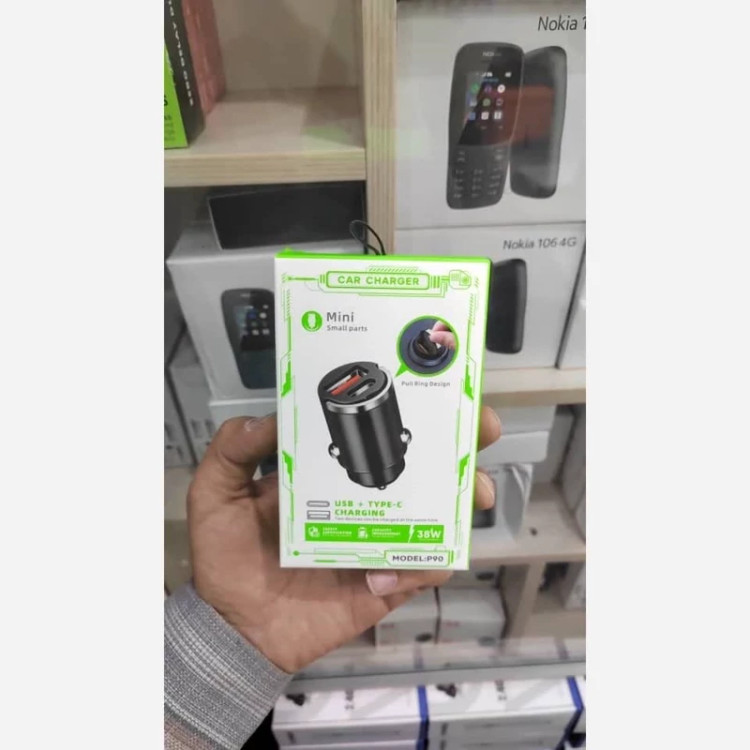 شارژر مدلp90 قدرت38w به همراه کابل تایپ سی خروجی یک عدد typ c یک عدد خروجی usb